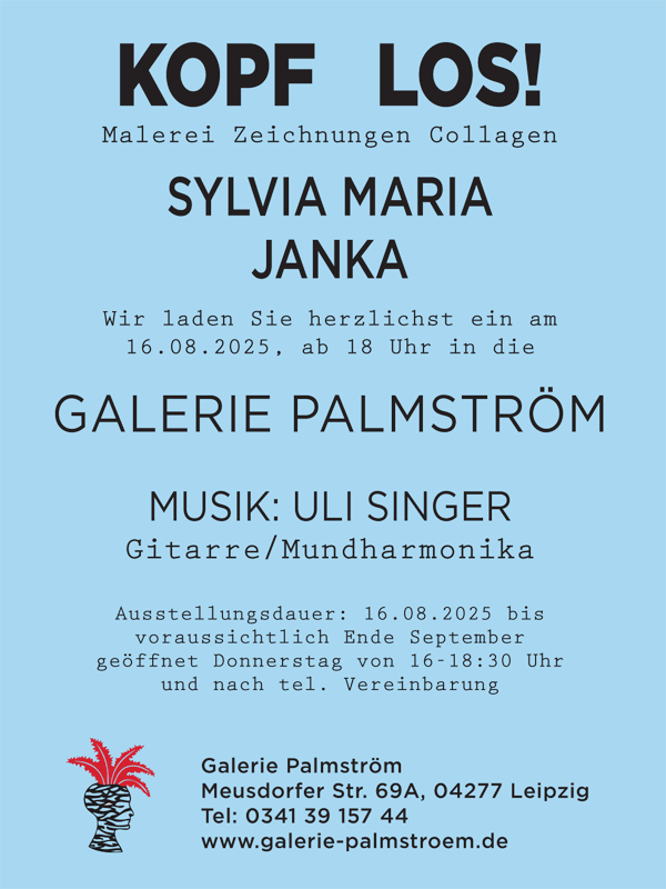 2025 Ausstellung "KOPF LOS!", Galerie Palmström, Meusdorfer Str. 69a, Leipzig, 16.08.2025 bis Ende September 2025 (Fotos)